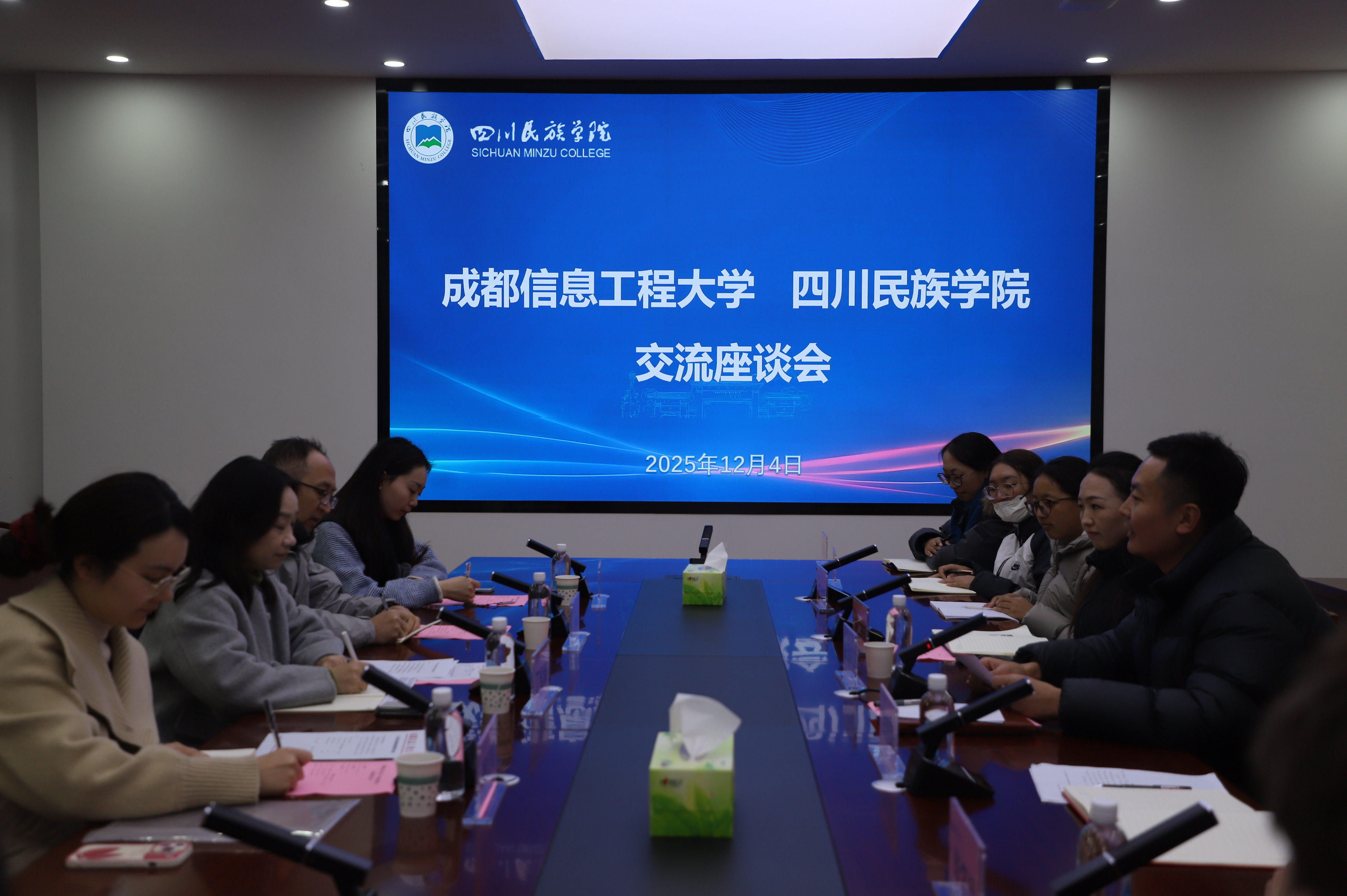 12月4日,我校招生就业处处长丁恒康和招生科科长张彤一行4人赴四川民族学院与在读的2025级民族预科学生进行座谈交流。四川民族学院预科教育学院党委副书记益西次仁、行政办公室老师甘迦琦、专职辅导员泽仁曲措及7名预科学生参加座谈会。